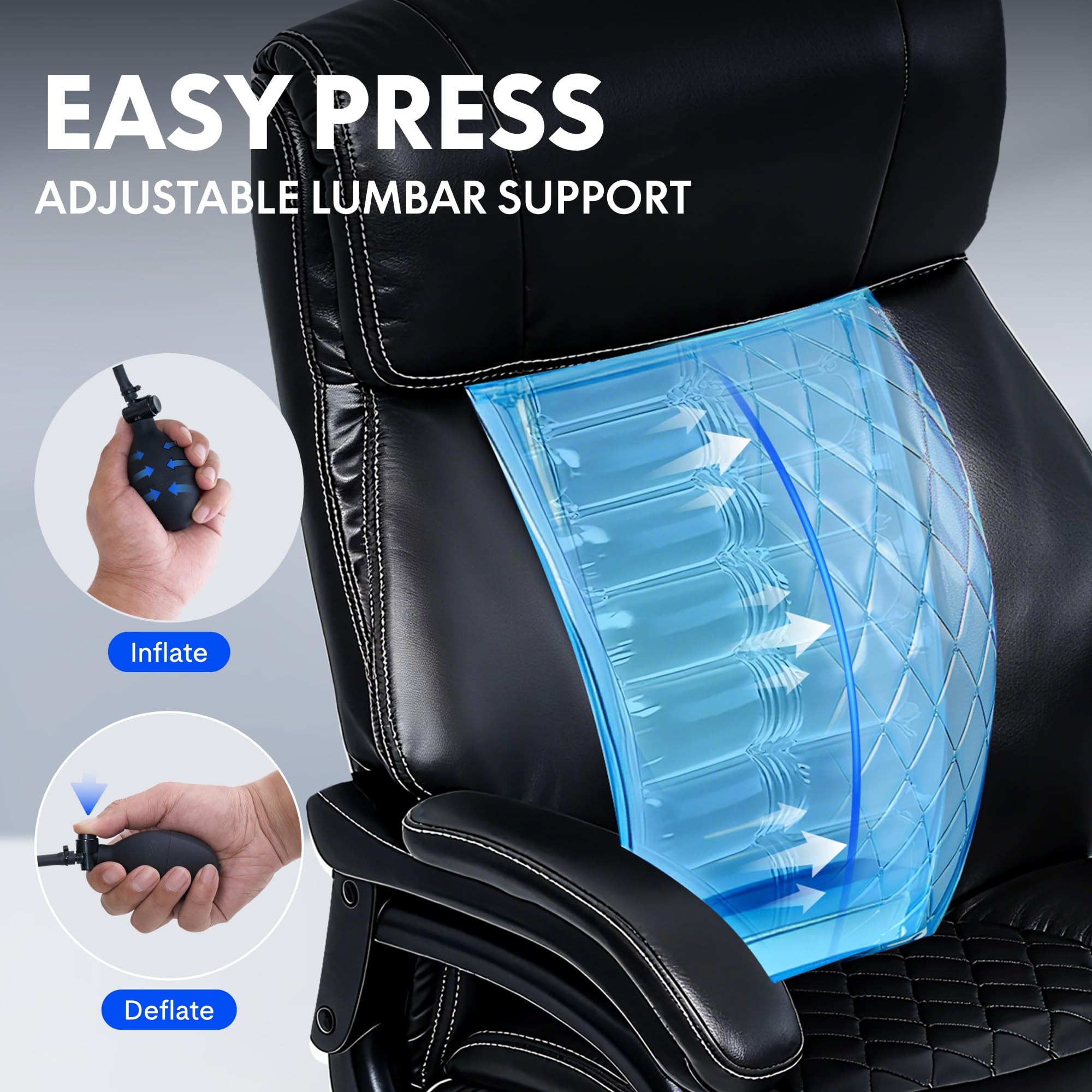 FLEXISPOT 500lbs Big and Tall Office Chair for Heavy People, Heavy Duty Computer Chair with Stable Arms Adjustable Lumbar Support Metal Base, Desk Chairs for Home Office Gaming Working, Leather, Black
