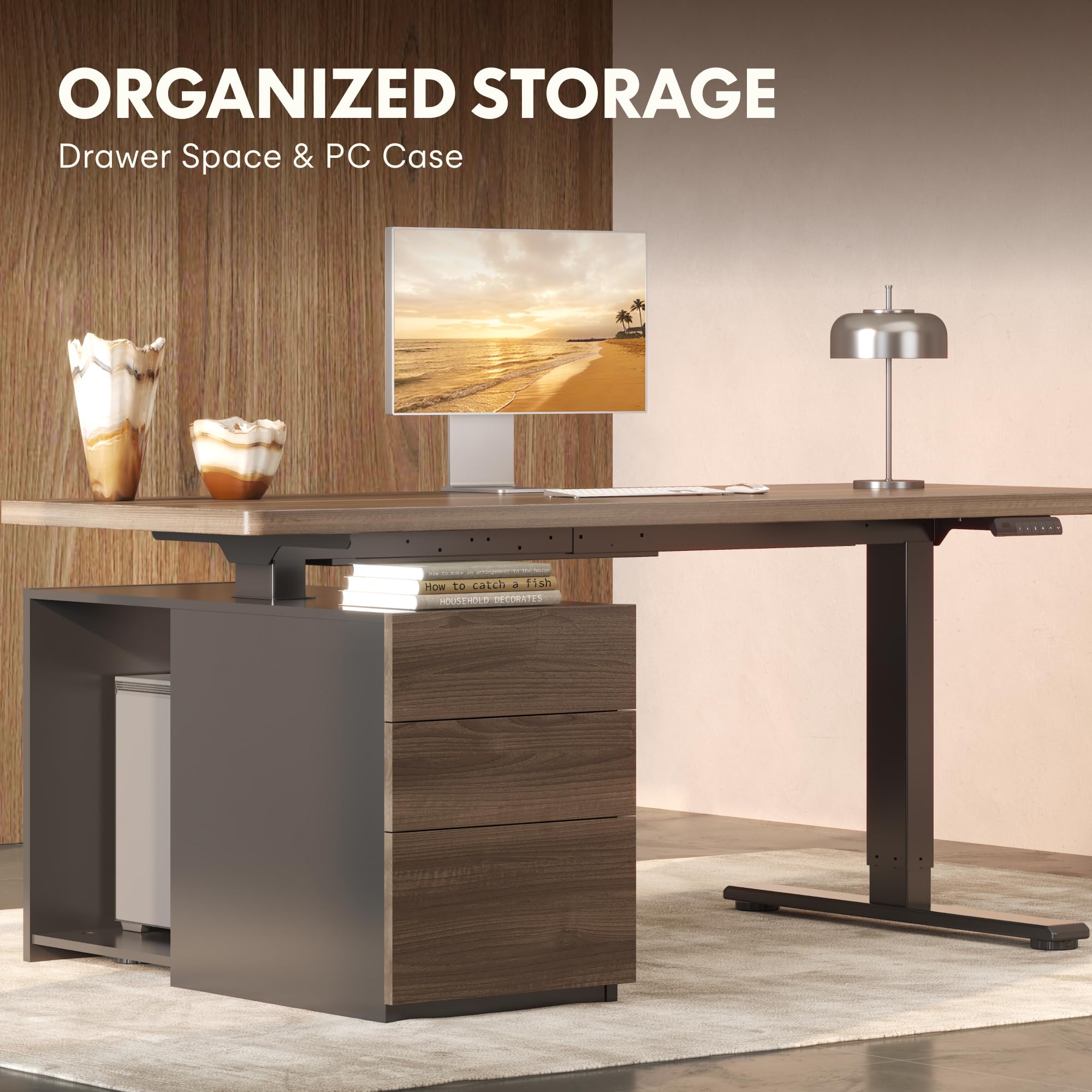 FLEXISPOT 71" Executive Standing Desk with Drawers & PC Case, Secretary Desk with Dual Motor Lift, 222 LBS Capacity, 1" Thick Desktop, Ideal for Home Office Workstation, Black Walnut, 3 Packages