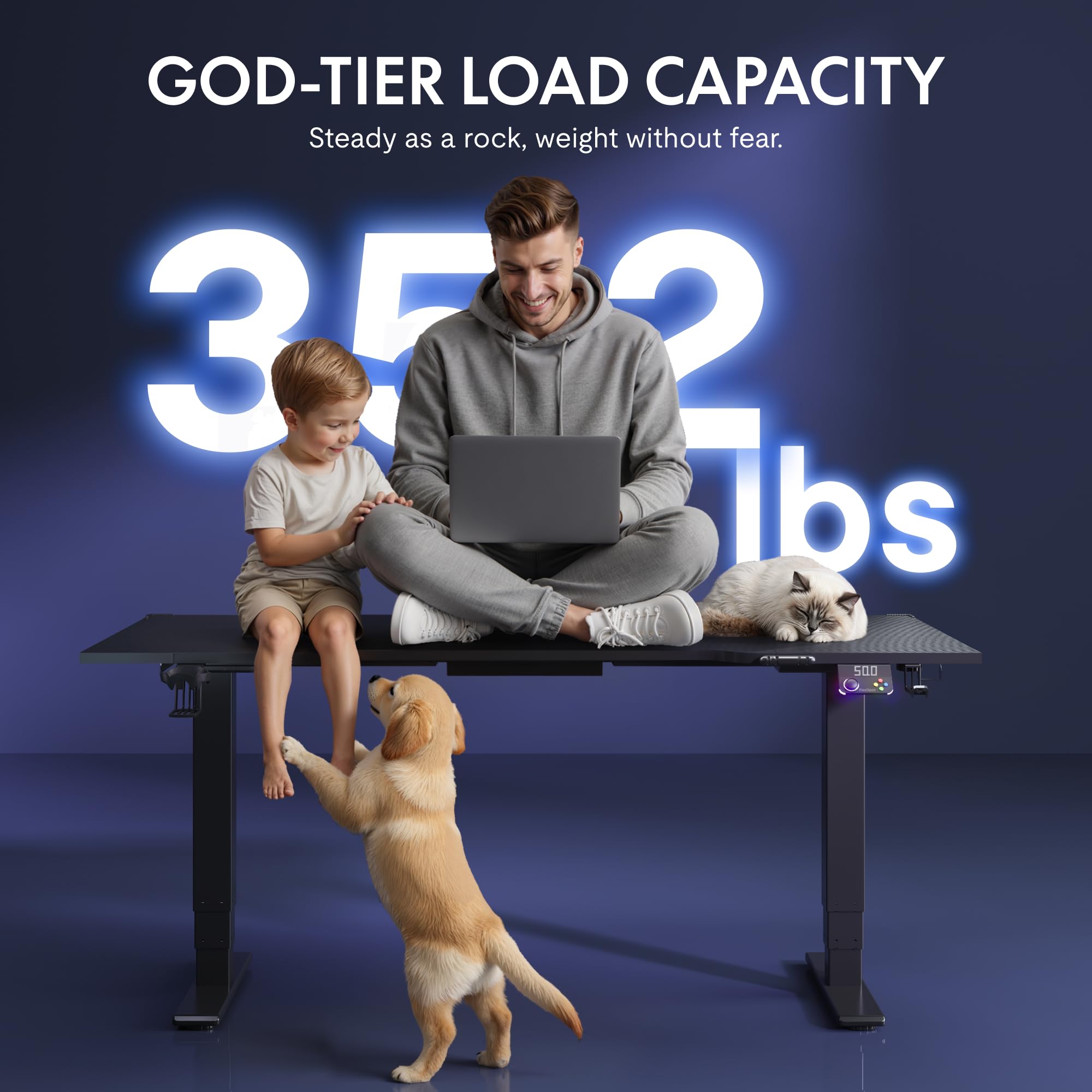 - 【Dual Motor Powerful Lift】 Crafted with aerospace-grade steel and dual motors, this heavy-duty adjustable height desk supports up to 352 lbs while delivering smooth, whisper-quiet height adjustments. Perfect for multi-monitor PC setups, gaming rigs, and streaming gear, built to endure intense daily use.