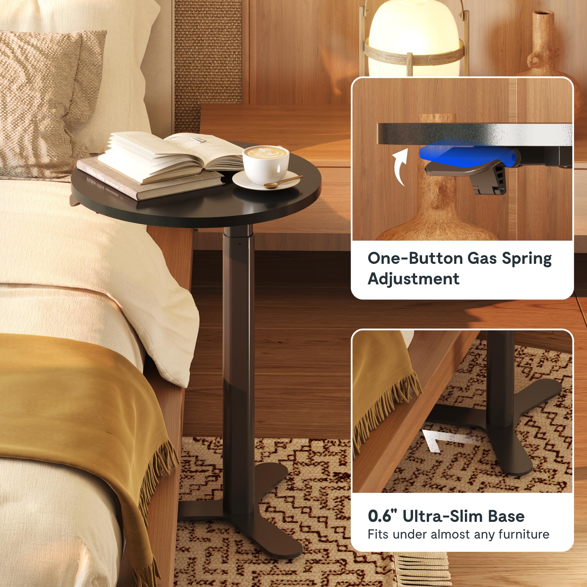 - SMOOTH GAS SPRING LIFT – NO POWER NEEDED:Built-in pneumatic lift system enables effortless height adjustment without electricity. Enjoy quiet, stable transitions from coffee table height to cocktail table height.