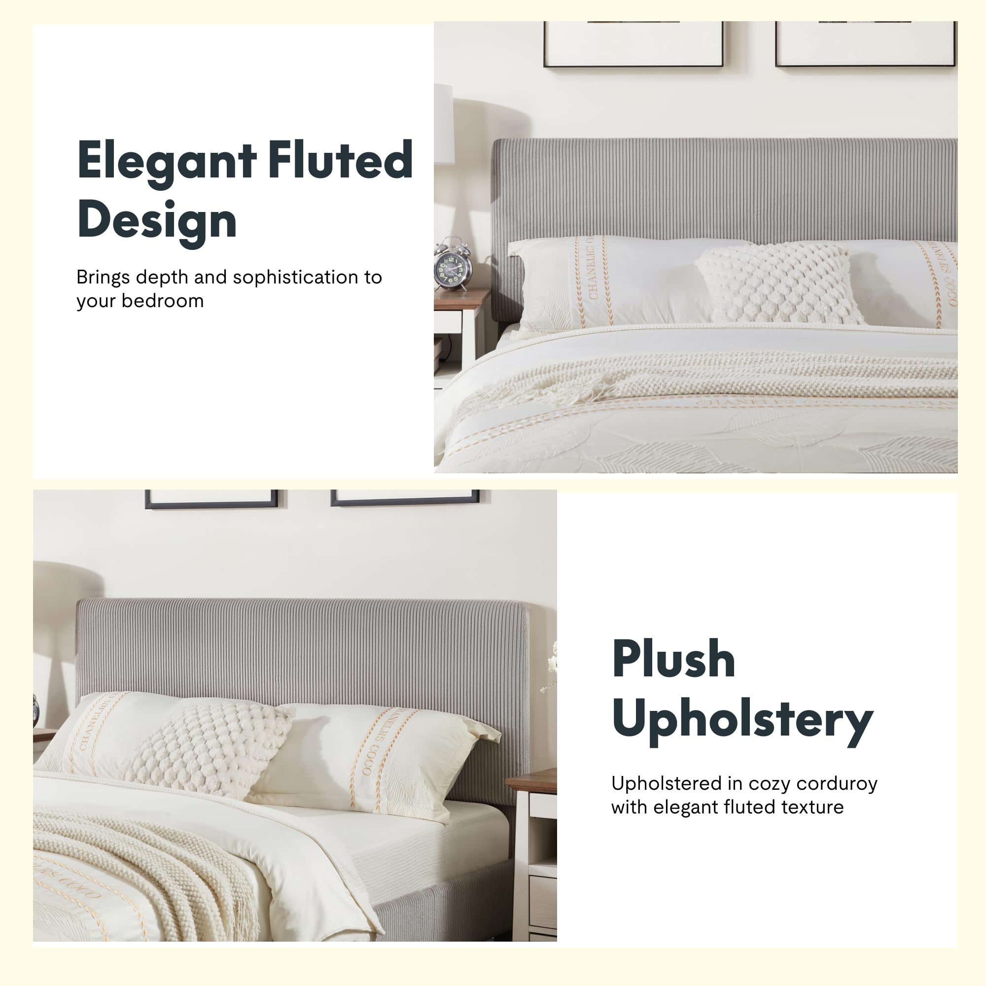 - Premium Velvet Fabric: Lavishly upholstered in premium velvet fabric, this queen size bed frame features vertically channeled fluting with refined line detailing throughout, delivering a modern, urban aesthetic that transforms your bedroom into a stylish sanctuary. Extra padding in the headboard creates an elegant and luxury side profile.