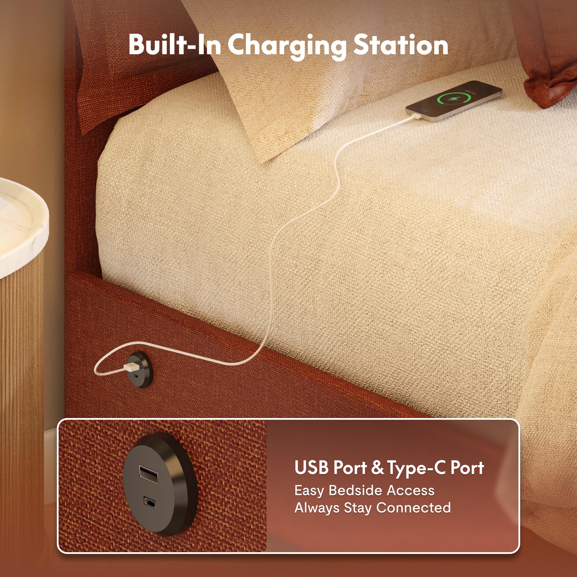 - Built-In USB & Type-C Charging Ports – Keep phones, tablets, or e-readers powered at bedside—ideal for students, professionals, and tech-savvy sleepers who want a clutter-free nightstand.