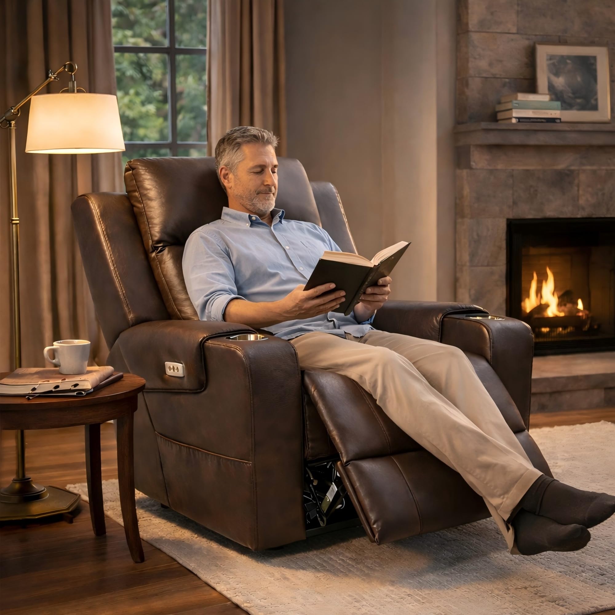 - 【Safe Support & Easy Assembly】- Crafted with a reinforced metal base and FSC-certified wood frame, this recliner offers stable, long-lasting support up to 300 lbs. Ships in two manageable boxes and assembles in minutes—just slide the backrest in, connect the cables, and plug it in. A secure, durable seating choice for seniors and families.