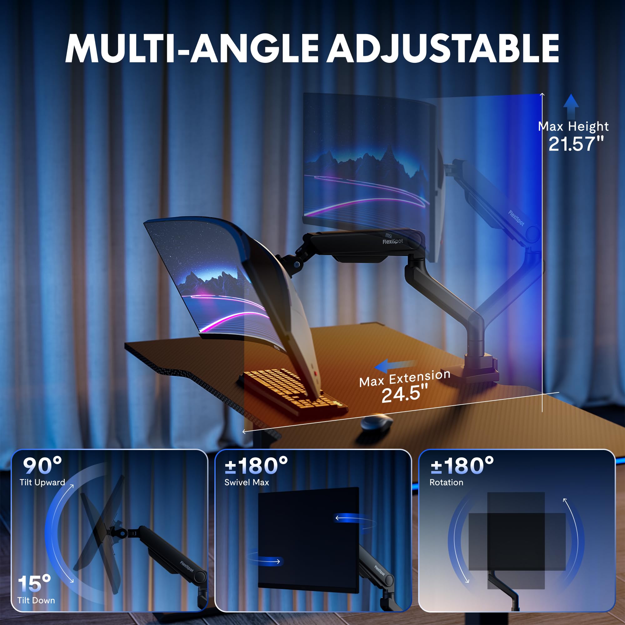 - 【Game-Ready Power, Office-Ready Precision】From ultra-wide gaming monitors to professional workstation screens. Whether you're dominating in AAA titles or crunching data across multiple windows, this heavy duty monitor arm delivers rock-solid support for monitors up to 49 inches and 44 lbs